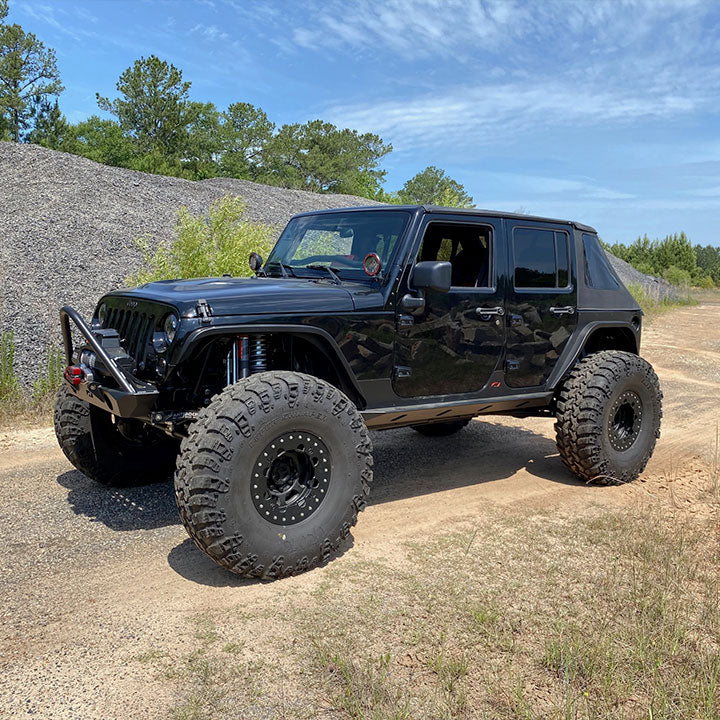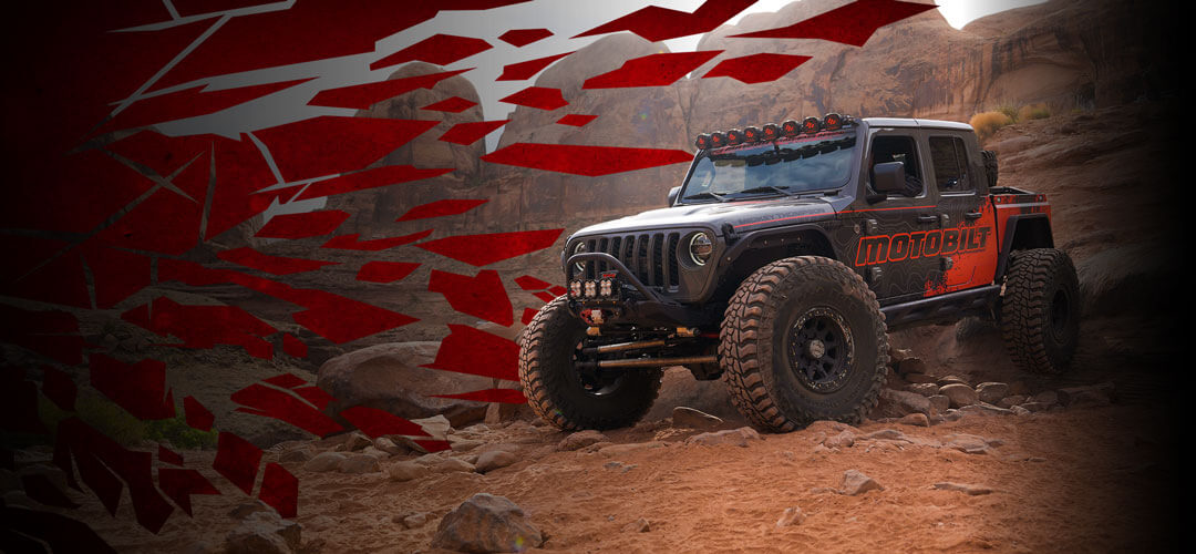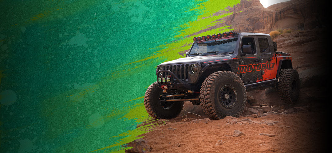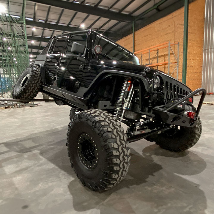 We took a boring, washed up two wheel drive Wrangler and transformed into the Motobilt beast you see now. Featuring an LS V-8 swap, Motobilt 1 ton axle conversion kits, Motobilt double triangulated 4 link suspension with coil overs and triple bypass shocks.