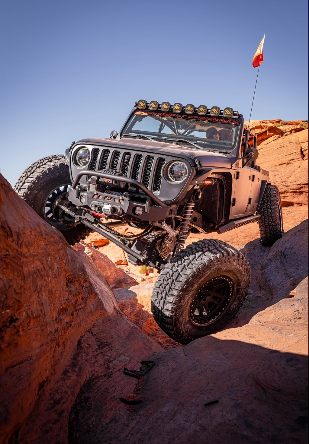 Once installed, the Gladiator is no longer defined by what it started as. Suspension loads into reinforced structure. Geometry is fixed. Protection is handled. Service access is planned. The Jeep becomes a platform that can handle whatever direction the build takes next.