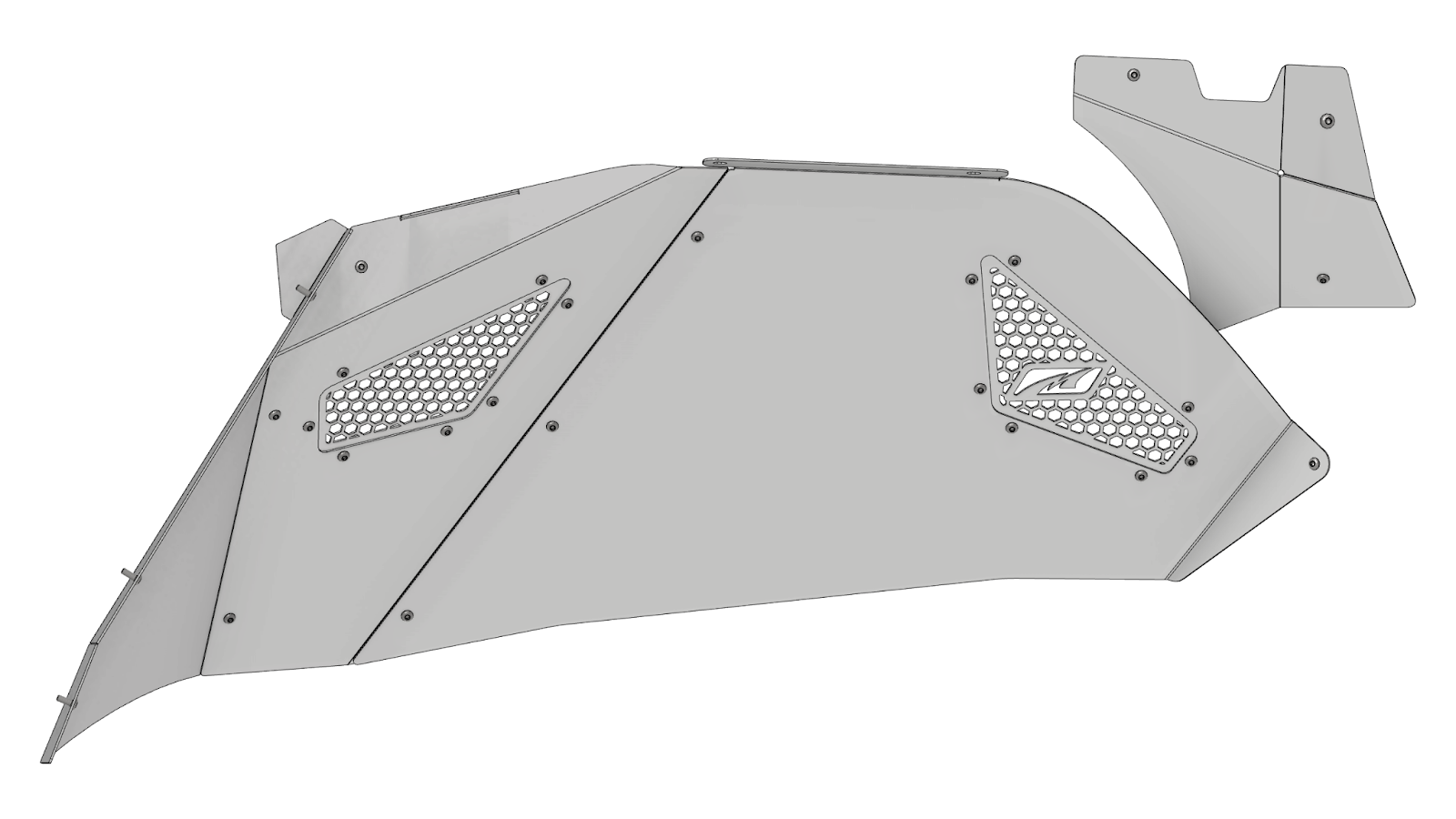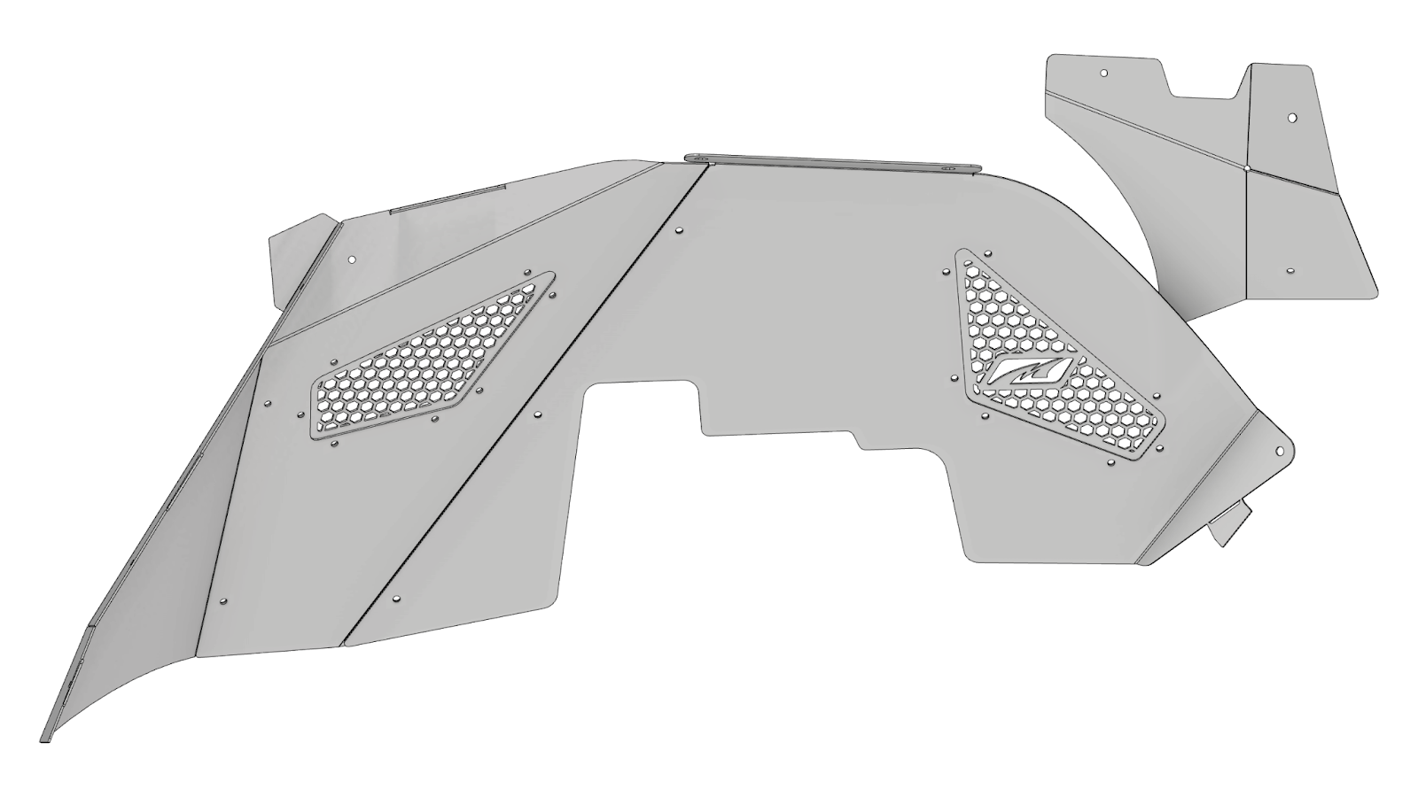 Precision-cut from lightweight aluminum, each inner fender is formed for proper fitment and maximum tire size. The MB1274 Standard Version includes all necessary cutouts and formed details for a direct, bolt-in installation. For builders running long-arm kits, coilovers, aftermarket shock towers, or other custom suspension configurations, the MB1274-B Blank Variant leaves out the pre-cut openings—allowing you to shape and trim them to your exact setup.