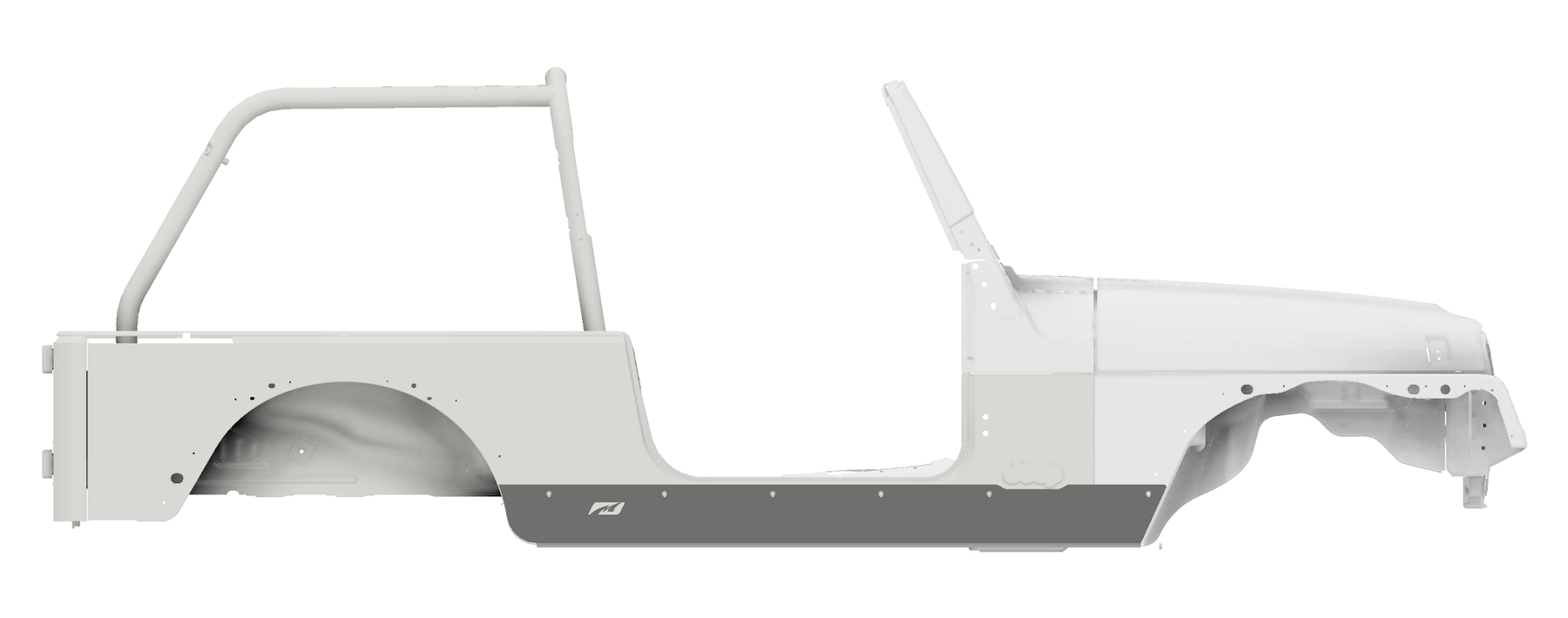 LJThe Motobilt Jeep LJ full length rocker guards with step extend from the front fender all the way to the rear wheel well opening are in-house laser cut CNC formed from 3/16 inch thick high strength steel plate. Our rocker guards are formed so that they wrap under neath the body of your jeep and tie into the factory body mounts. We also slot the lower portion of the rocker guards to make it easy to clean out your rockers after a hard day of wheeling. Motobilt Jeep LJ Rocker Guards are countersunk and ship bare metal with hardware included.
