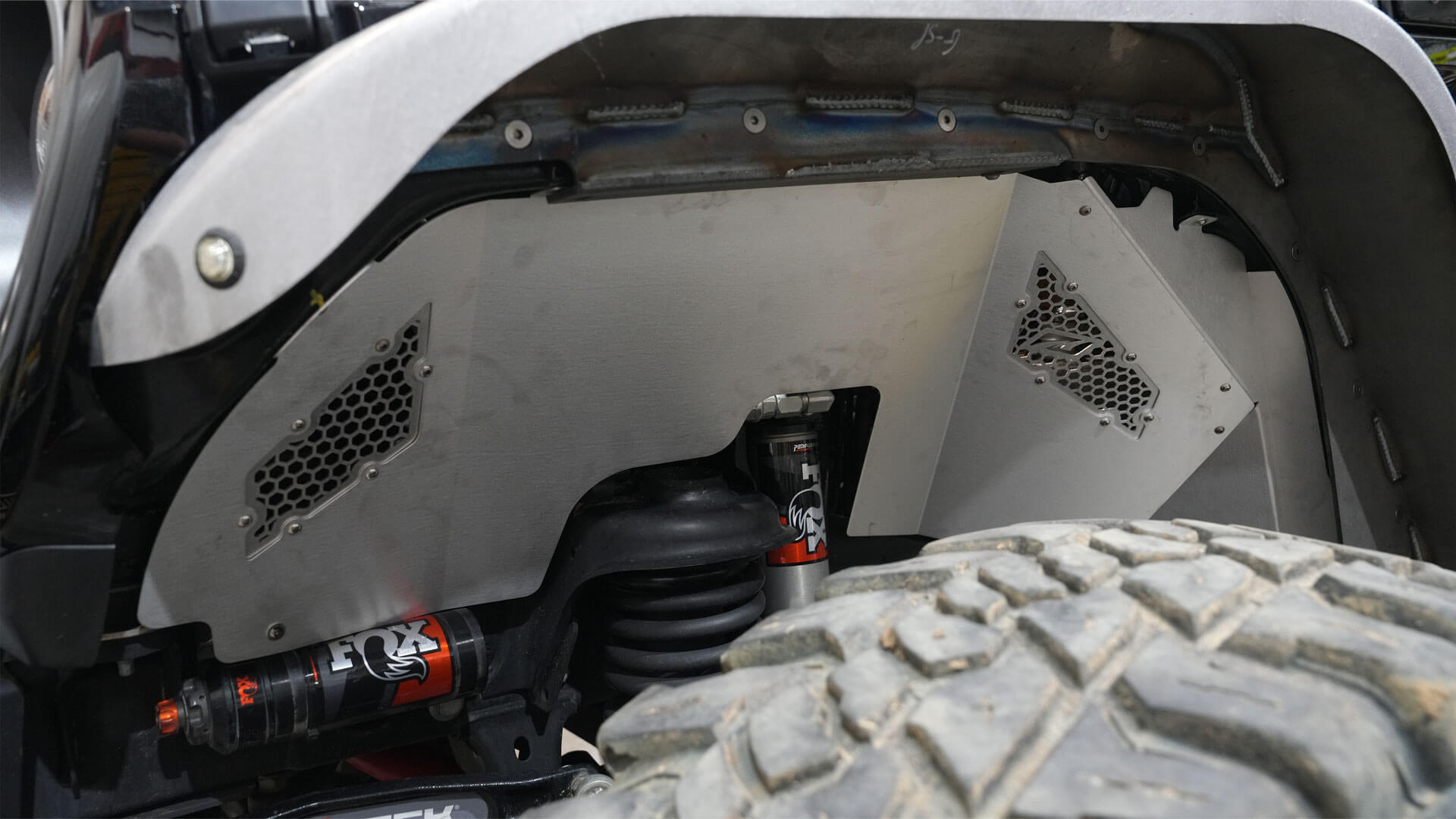 As tire size and suspension travel increase, the factory plastic inner fenders quickly become a limitation.