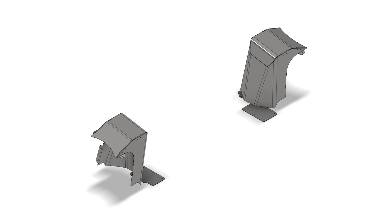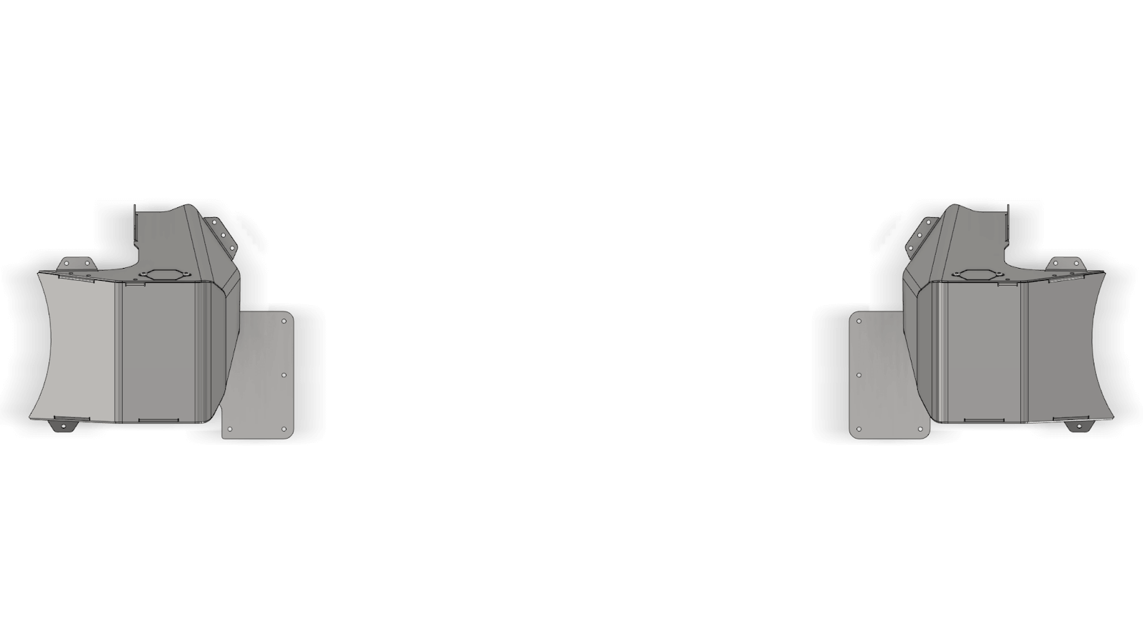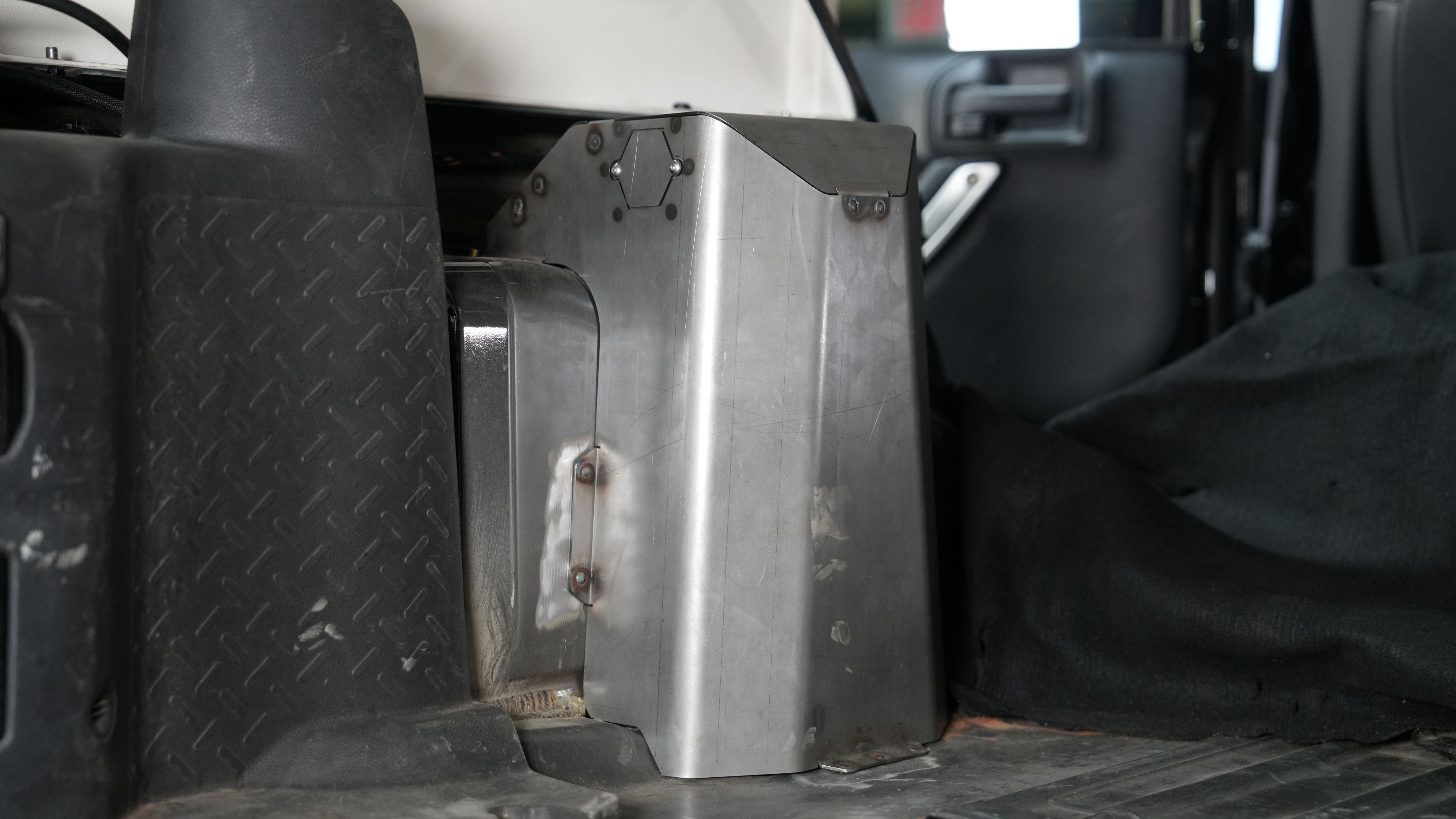 JKURear tower covers designed for use with the MB1554 rear coilover towers, featuring large radius bends and an integrated access door for shock bolt service while allowing the tub to be fully sealed from the elements.