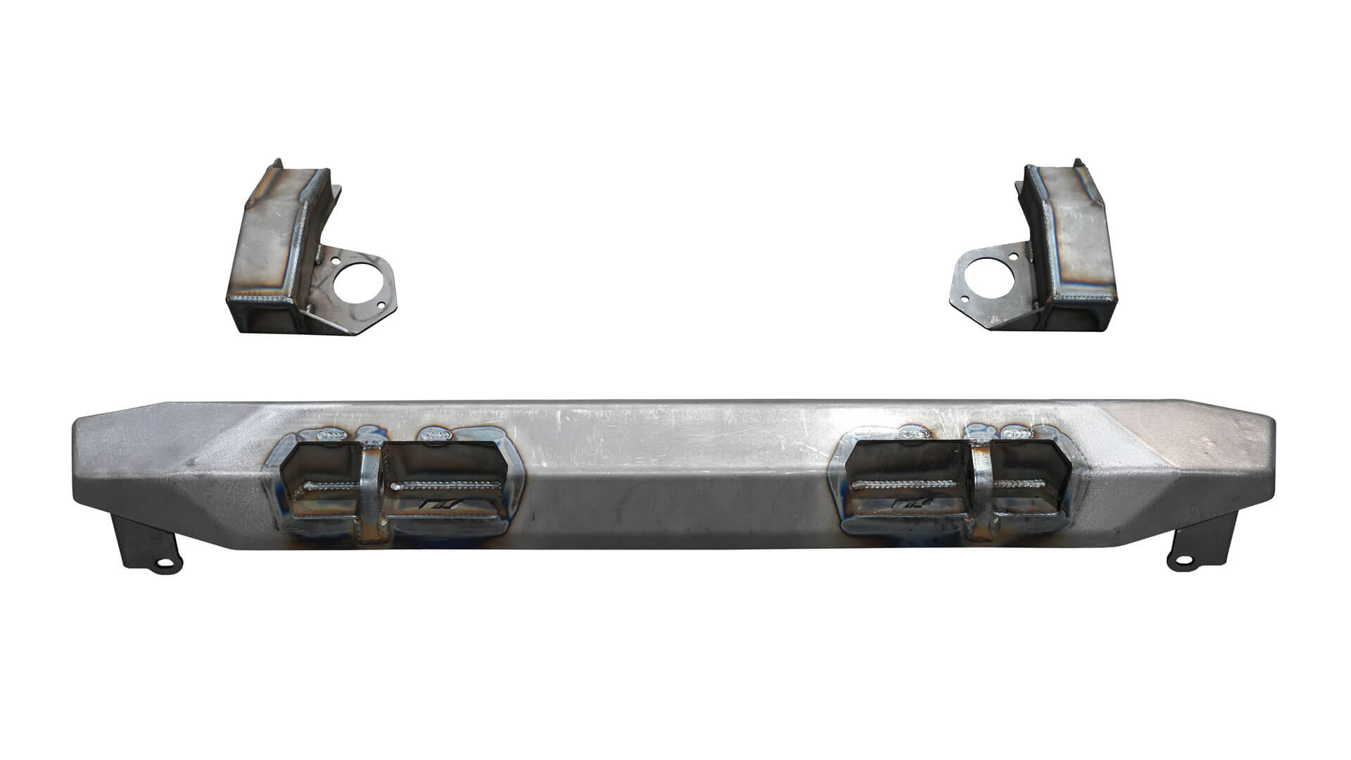 JKJKUHigh clearance frame chop rear bumper for Jeep JK and JKU that replaces the factory frame section with a welded mini frame rail and delivers an aggressive departure angle with recessed D ring mounts built for real trail use.